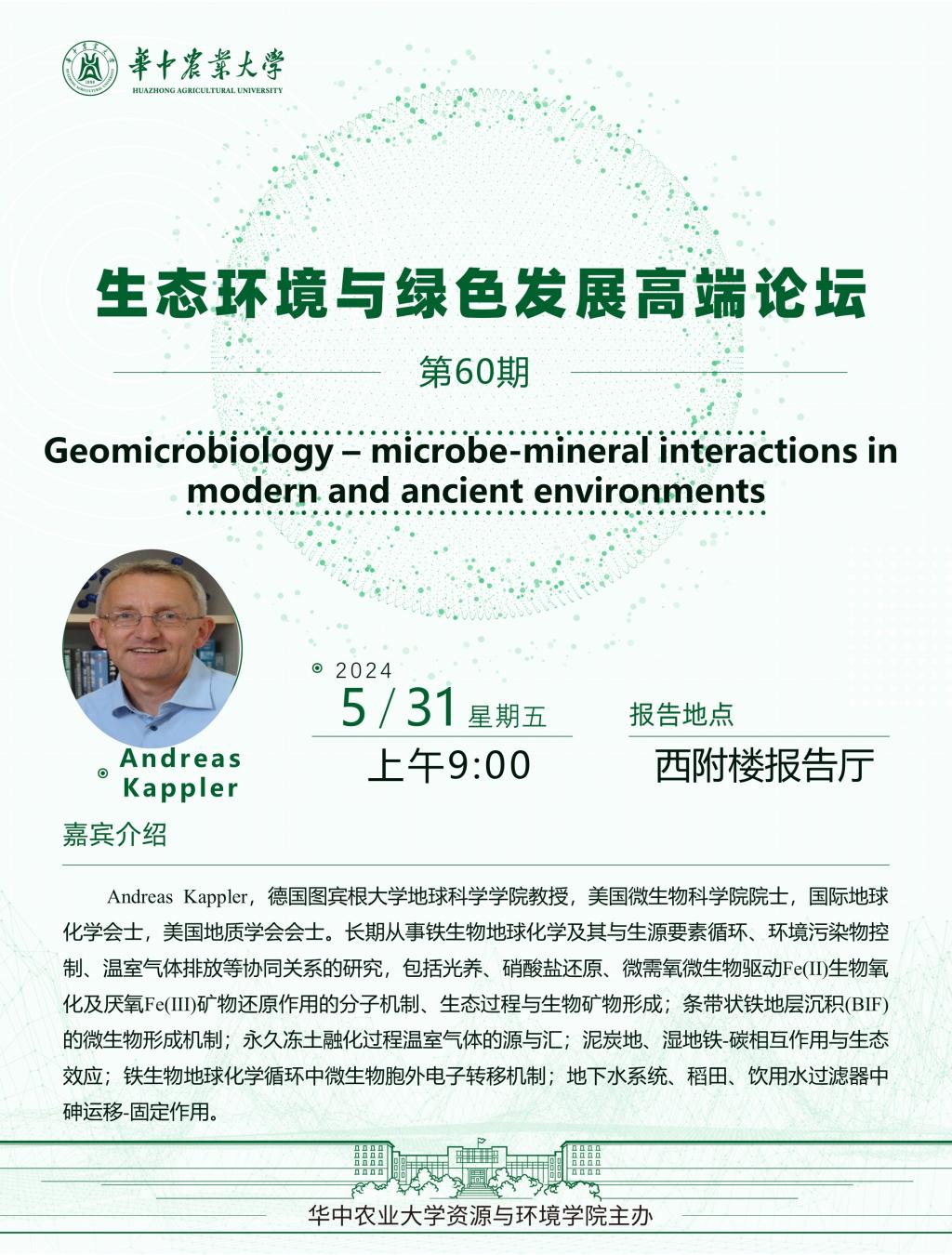 【高端论坛】第60期:Geomicrobiology – microbe-mineral interactions in modern and ancient environments